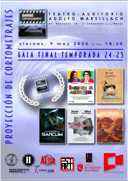 El viernes día 9 de mayo, a partir de las 18:30, el Teatro Auditorio Adolfo Marsillach de San Sebastián de los Reyes acogerá la última sesión de la temporada 2024-2025 de Sanse Cortos en Abierto. En ella se proyectarán los cortometrajes más votados por el público en cada una de las sesiones celebradas de noviembre de 2024 a abril de 2025.